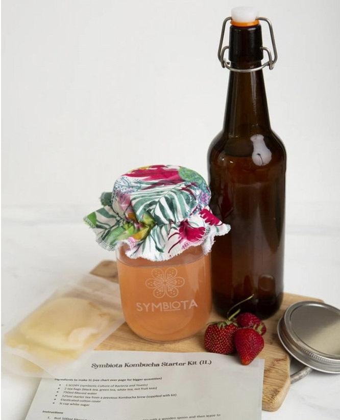 Make your own home-made SYMBIOTA kombucha using a live culture which turns sweetened tea into a delicious, fizzy beverage. Kombucha is a fermented sweetened tea loaded with antioxidants, vitamins and minerals to improve our health and wellbeing.